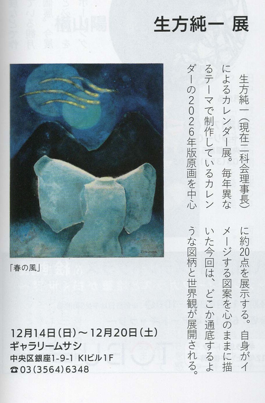 | 12/14(日)~12/20(土) 生方 純一 展 美術の窓12月号(234頁) |