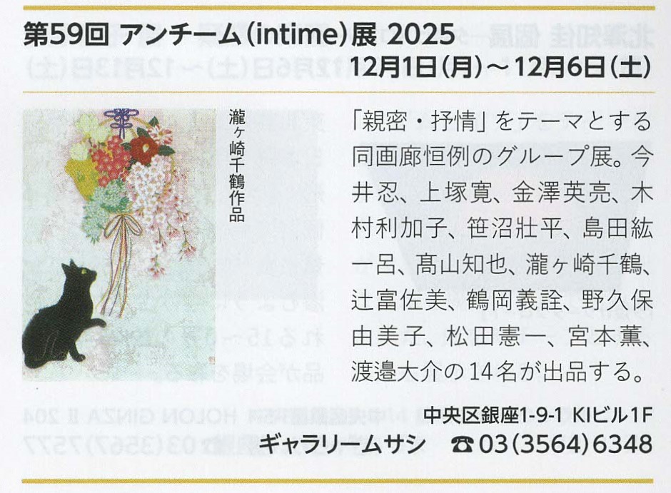 | 12/5(月)~12/10(土)アンチーム展 美術の窓12月号(250頁)、ギャラリー12月号(58頁) |